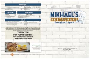We’re a US company, so you’ll never have to worry about strange spellings or the typos common with overseas designers and typical online menu makers. We don’t use generic templates either; we use experienced graphic designers. Everything we do for you, we do for you alone.